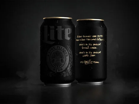On their reverse, they carry a condensed version of the campaign manifesto in gold script: “A few friends are better than a few thousand followers. Here’s to the original social media. Here’s to the original light beer. It’s Miller Time.”