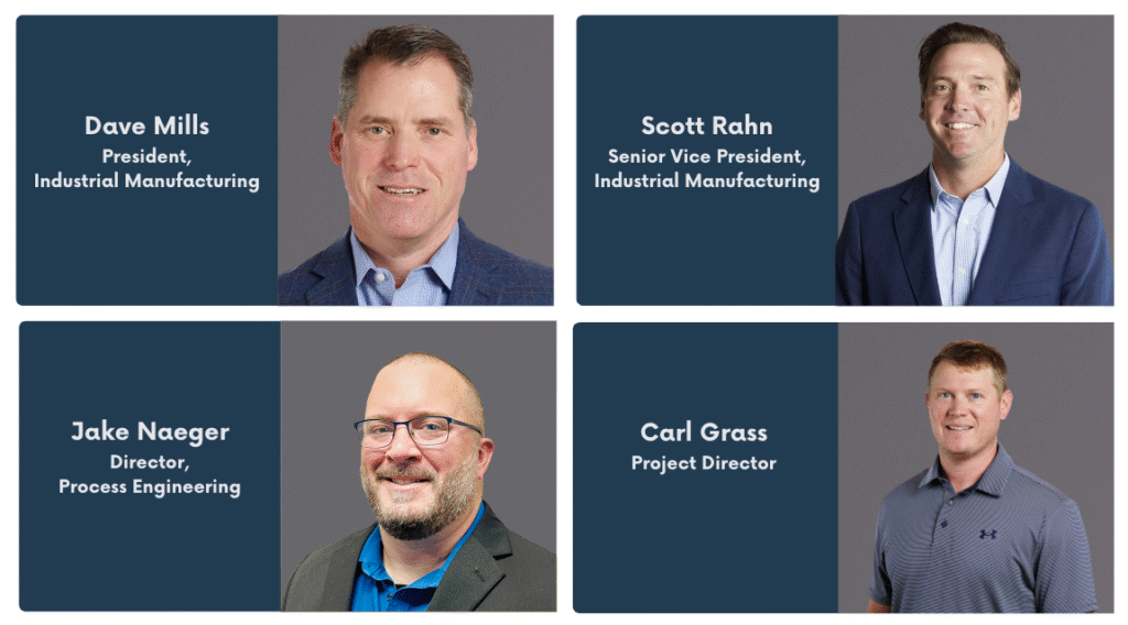 To spearhead the division, Roeslein has made four strategic hires: Dave Mills, President, Industrial Manufacturing; Scott Rahn, Senior Vice President, Industrial Manufacturing; Jake Naeger, Director, Process Engineering; and Carl Grass, Project Director. Together, they bring more than 80 years of experience in industrial manufacturing, having worked with leading brands such as Kraft Heinz, PepsiCo, Coca-Cola, Sherwin Williams, Nestlé, Mark Anthony, and Anheuser-Busch. Their expertise spans Consumer Products, Advanced Manufacturing, and Mission Critical sectors.